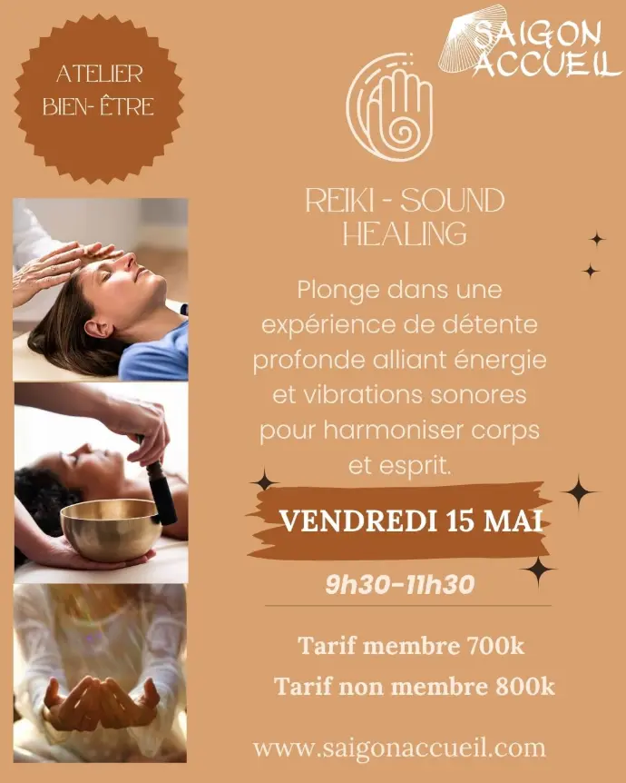 Cet atelier combine la douceur du Reiki — pratique japonaise d’harmonisation par l’imposition des mains — et la puissance vibratoire du Sound Healing, à travers les sons des bols chantants, gongs, tambours et autres instruments vibratoires.