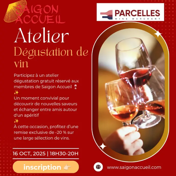 Saigon Accueil et Parcelles Wine Merchant vous invitent à partager un moment convivial autour d’un apéritif festif !