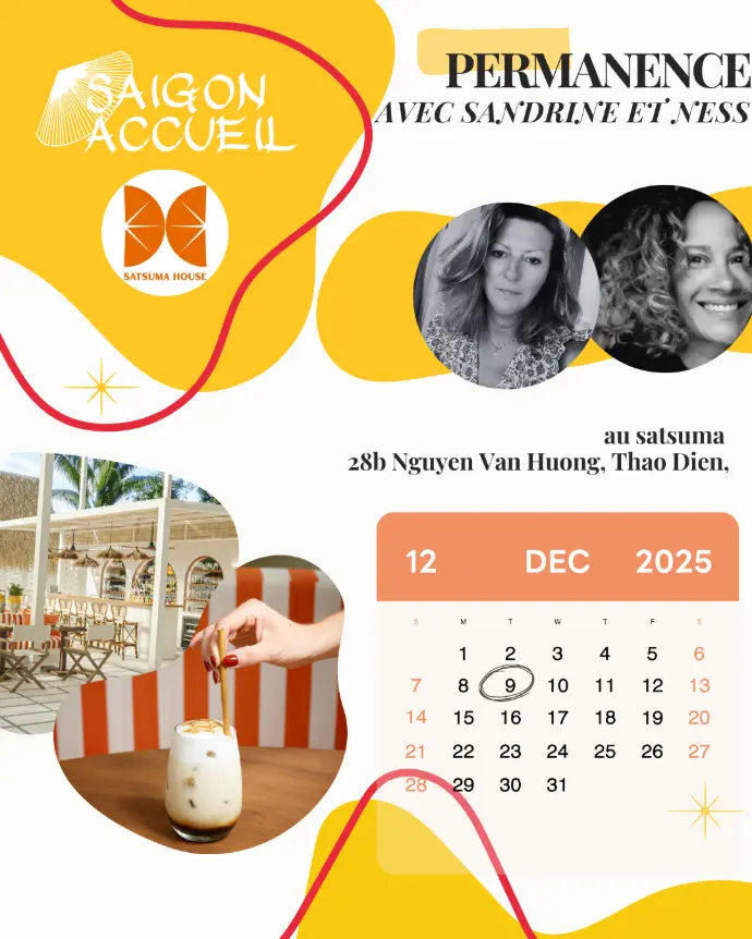 🌟 Envie de papoter, de rencontrer du monde ou de rejoindre Saïgon Accueil ? Ness & Sandrine vous attendent au Satsuma House avec le sourire !